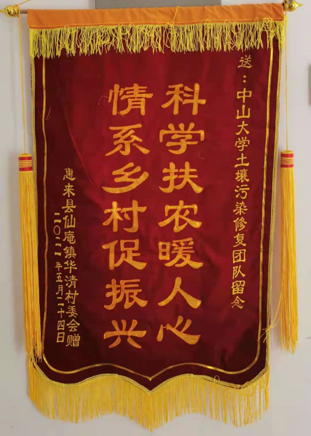 2021522-23日,学院副院长汤叶涛教授,党委彭灵灵副书记,环境科学系晁元卿副教授、刘文深博士和11名学生党员前往惠来县开展科技下乡活动。此次科技下乡,根据当地耕地土壤板结、有机质和营养物质匮乏等特点,项目组与农丰宝集团有限公司合作生产了一批适用于当地耕地的有机改良剂。在新乡仔村,项目重点帮扶了一个刚刚脱贫的“种植大户”。该农户吃苦耐劳且有专研精神,尊重科学种植和绿色发展,项目成员通过与其分享土壤肥力和合理施肥知识、捐赠有机改良剂等方式,希望其能够在当地树立种植典范。在桥观村和华清村,项目成员向每一位刚刚脱贫的农户捐赠有机改良剂,并详细讲解改良剂的使用方法。