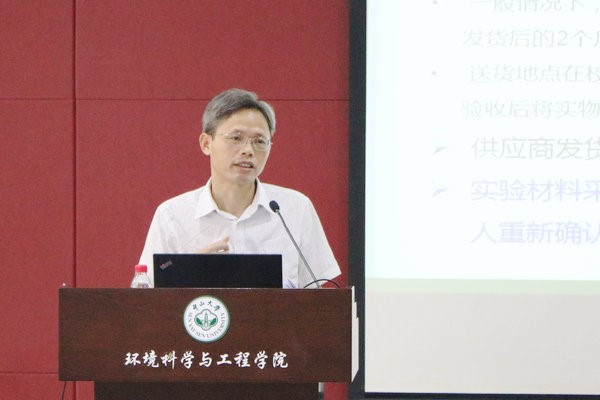 李传浩教授作分散采购宣讲及实验室安全教育(童星雨 摄)