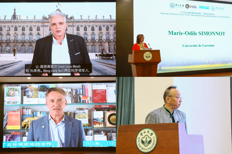 紧接着,洛林大学校长Hélène BOULANGER教授、洛林大学Marie-Odile SIMONNOT教授、法国农业食品环境研究院院长Philippe MAUGUIN先生以及法国农业食品环境研究院驻华首席代表李政先生分别致辞,表达了ECOLAND项目的重要性以及对未来合作的坚定信心。他们认为这一合作将推动土壤环境科学的发展,为解决全球土壤环境挑战提供重要范例。