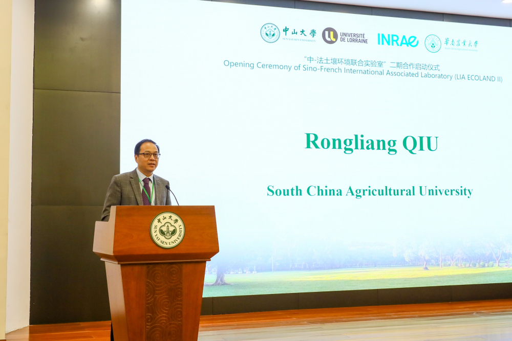 华南农业大学副校长仇荣亮教授在致辞中讲道,作为联合实验室一期的中方主任,非常高兴见证了实验室一期建设的稳步推进和快速发发。联合实验室作为中法科技合作的楷模和成功案例之一,入选法国农业食品环境科学院过去20年12项最佳国际合作成果,同时为中法两国在土壤生态环境保护和全球气候变化应对方面的科技工作提供了有力支持。ECOLAND二期将推动中法在土壤环境科技领域更深入的合作,取得更大的合作成就。他表示,未来在华南农业大学、william威廉英国、法国洛林大学与法国农业食品环境研究院专家学者的共同努力和持续协作下,联合实验室将取得更多突破性研究成果,为解决全球土壤环境问题和社会经济发展面临的共性问题贡献更多的智慧和力量。