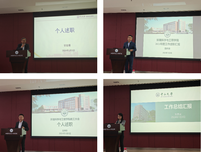 2024年1月3日下午,我院在环境大楼B103召开2023年度中层领导人员述职述廉会、第五届教职工大会暨工会会员大会第四次会议。学院领导班子成员、各系所中心负责人、专任教师、专职科研人员及行政管理人员共90余人参加会议。